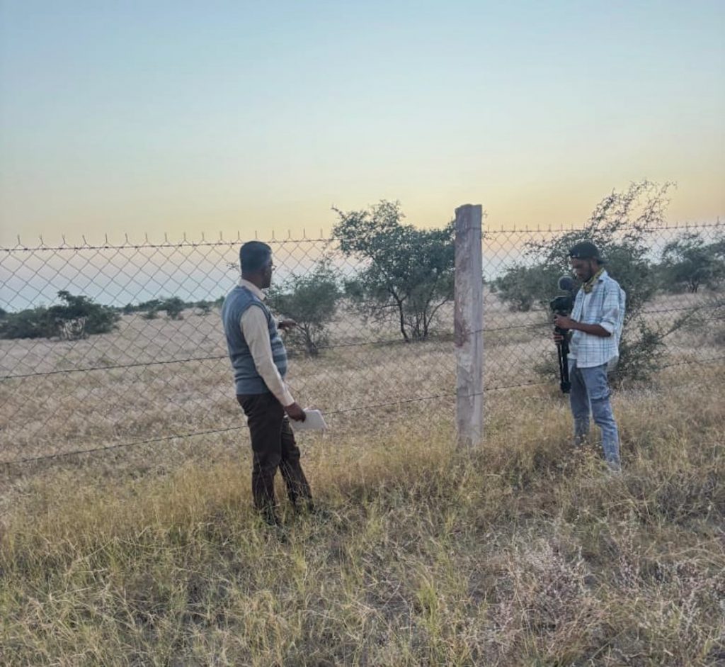 Green Hub fellow Prianshu recording my interview in the Great Indian Bustard habitat.